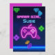 Spel på neon rosa, blå, gul spelarinbjudan inbjudningar