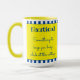 Anpassa detta nautiskt stilade ord-spel mugg till kostym till vem som helst, till hem, stuga, släpvagn eller restaurang. Bakgrunden mönster kan tas bort och kan växlas till valfritt färg. Den ljusa gultens mittpunkt, rand, kan ändras till vilken färg som helst, liksom marinblå ränder. Text på lämnad sida av formgivningen kan växlas till vilket meddelande som helst, för vilket tillfälle som helst, med flera mugg färg att välja från och kopp storlekt. Ett roligt och ett kreativ sätt att skicka ett budskap, som är perfekt för pension, eller att önska någon snabb återhämtning, eller helgdag.