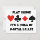 Om du är värd för en bro i party, kommer du att njuta av någon av dessa inbjudningar till anpassadet som innehåller de fyra korten i kostym, tillsammans med ordspråket "Play Bridge It's a Form of Mental Ballet". Få andra att göra en dubbla om hur du känner dig om att brygga nästa gång du är värd för en bro party!
