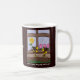 En mugg med en rolig tecknad om bin som pratar om att blommor är svåra att få tag på. Bakgrund, bild och text kan vara personlig. Originalteckningar efter DB-Tecknader.