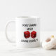 Republikanerna och vissa demokrater i kongressen försöker "privatisera" säkerheten i Social. Det elaket är att er Social-säkerhet skulle vara knuten till Lagrar-marknaden. Vill du att Wall street ska ansvara för Social-säkerheten? I mugg står det: "Spel inte med min Social-säkerhet." Den röda tärningen visar att spelare kastade orm ögon. Bevara Social, och låt inte politikar ta bort det. Mugg med sitt politiska budskap ger en unik och tankeväckande gåva till en kollega eller en man eller kvinna som är intresserad av att rädda Social Security.