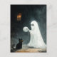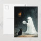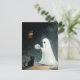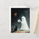 En roligt Halloween-scen med ett spöke som vill leka med en katt med ett garn boll