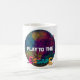 I kopp-designen finns frasen "Spela upp på Escape" på en framträdande plats i fet, dynamisk typografi. Ord ställs mot en livfull bakgrund av abstrakten som antyder äventyr och upphetsning. Den övergripande utformningen förmedlar en känsla av frihet, roligt och spelkraft för att transportera dig till en annan värld.
