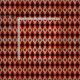 Röda hjärtan och diamanter samt svarta klubbar och spader på en bakgrund av röda och bruna diamantformer.