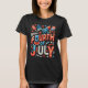 Denna "Lycklig Fjärde juli" T-shirt är ett sjudande och roligt sätt att fira Independence day. Utformningen innehåller frasen "LYCKLIG FJULY I JULY" på ett lekfullt, djärvt brev, som var och en är märkt med patriotisk inslag som stjärnor, rand, raketer, glass och fyrverkerier. Den röda, vita och blå färgen skapar en festlig och glad perfekt för helgdag. Det som gör denna T-shirt speciell är dess viskfulla och livliga design som fångar glädjen och upphetsningen från den 4 juli. De olika inslagen som fyrverkerier, raketer och glass tillför roligt och nostalgi, skapar perfekt för alla åldrar. Det är ett idealiskt val för parad, barbecues, fyrverkeripjäser eller alla festliga visningar. Bära den här "Lycklig Fjärde juli" T-tröjan för att visa ditt amerikanska pride och sprida den festliga andan. Dess unika och färgstarka design garanterar att du kan stå ut och göra en påstående och fira helgdag i stil och roligt.