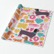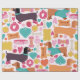Ett livligt och färglöst mönster med takshundar i svettare, omgivna av hjärtan, ben, tass avtryck, halsband och hund. De livliga illustrationerna av färg och charmering hyllar hundar glatta anda.