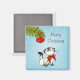 En rolig och söt magnet med ett jultema. Ett eländigt och lekfullt kattunge. Hon ser en dekoration i julgran hängande från en gren i gräs och undrar om hon ska leka med den eller inte. Texten säger God jul i ett visstiskt teckensnitt. Ställ in på blå bakgrund med vitt snöflingor.