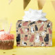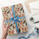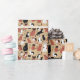 Omslagning papper i en mängd söta, stiliserade katter i olika leksaker, färg och mönster - tabby, svart, vit och kalico - inställd mot en betisk bakgrund. Sprickad lövning och små hjärtan lägger till lekfulla accenter i designen.