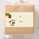 Gift-etiketter med ett roligt och söt jultema. Ett eländigt och lekfullt kattunge. Hon ser en julgran-dekoration hängande från en gräs-gren som undrar om hon ska leka med den eller inte. Sätt på en gräddbaksida på färgaden.
