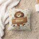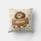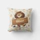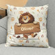 Den här roligt personlig dekorativ kudde har en söt lejon som håller en överdimensionerad namnskylt av trä.