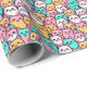 Omslagning papper på lekfulla katter av tecknad-stil i pastellhuvar av rosa, gult, vitt och teal. Katterna har en minimalistisk utformning med stort ögon och ett uttryckligt ansikte som är nära sammansatt i ett sömlöst mönster.