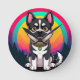 Illustration av ett vackert tecknad hund sitta framför en färgstark regnbågsbakgrund, med en lekfull ambitionsnivå och omgiven av ett gott skogslandskap, med betoning på glädje och vibrerande artism.