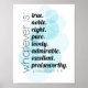 Spelar ingen roll är sant, ädelt, höger, ren, underbar, beundransvärd, utmärkt och lovvärd. Från Bible verse Philippians 4:8.