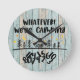 Ett lustigt "Spelar ingen roll, vi campar"-citat på en rustik blå drivplankbakgrund.