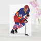 Den här designen spelar ishockey. Den har en spelare i ishockeyutrustning på isspelandet. Den här ishockeydesignen ser underbar ut på hälsningskorten