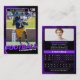 Den här moderna, Lila- och svarta fotbollsmodellen är perfekten för att fira din favoritspelare! Anpassa den med egna foton, statistik och teaminformation för att skapa ett unikt och minnesvärt kort. Den här mallen är perfekt för enskilda spelare, grupppresentationer eller högre nattpresentationer. Gör dina egna fotbollsvisitkort i dag!
