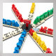 En grafik av hög kvalitet som visar ett dynamiskt spel av mexikanska Tåg dominoes. Den rena, vita bakgrunden belyser de enskilda dominofärgerna och de färgstarka tåg-markörerna, skapar den en perfekt för en rad olika produkter, från kläder till hemdekoration.