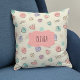 Den här fina personligen dekorativ kudde har massor av enkla hjärtan, punkter och vågigt linjer som är målat med mjuka pastellfärgämnen i gult för rosa, grönt, lavender och blek.