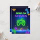 Spelet är igång neon grön, blå, gul gamer Inbjudan