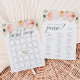 Spelkortet för möhippa av chic matchar vår samling av möhippor för Airy Blommigt och har en blommigt med vattenfärg gräns i dekorfärgad persikofärgad, rosa och vår grönt. Med dubblans sidokort kan du få två spel i ett. Front har Möhippa Bingo, med What's in your Purse. Anpassa med bruden till namn och duschdatum.