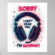 Bilden har en stiliserad illustration av ett par spelhörlurar mot en vit bakgrund. Hörlurarna är tillverkade i ett fet, karikatyrskt stil med vibrerande färg, inklusive blått, rosa och svart. Hörlurarna visas med en mikrofon ansluten och hörbarna är stora och cirkulära.