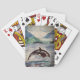 Vattenfärgen teckning på spelkort. Fria valar som hoppar i vatten.