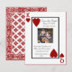 Coola fotobryllopsinbjudningar spara datum bra för ett vegas-bröllop eller valfri plats. Har spelkort eller pokertema med kung och hjärter dam. Lägg till din egen text till denna coola las vegas kung och hjärter dam anpassat bröllopsinbjudan.