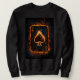 Bilden visar ett spelkort, Ace of Spades, omgivet av energetiska flammor.