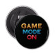 Utformningen innehåller frasen "Spelläge på" i ett fet, sans-serif-teckensnitt som återges i en pulserande palett av elegant färg. Ord är indelat i en dynamisk, diagonal sammansättning som skapar en känsla av energi och upphetsning.