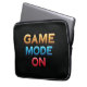 Utformningen innehåller frasen "Spelläge på" i ett fet, sans-serif-teckensnitt som återges i en pulserande palett av elegant färg. Ord är indelat i en dynamisk, diagonal sammansättning som skapar en känsla av energi och upphetsning.