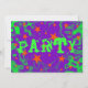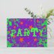 Inbjudan med en roterande bakgrund för lila och grönt som är utspridd med magiska, glödande stjärnor för orangen och ord "Party" skriven i skarp grönt. Anpassadet lila, grönt och orange är utformat så att du kan lägga till din egen text, bilder och dina idéer. Det är enkelt att ändra texten med hjälp av mallen eller klicka på knappen Anpassa för att göra ytterligare ändringar. Matchningsomslag och porto frimärke finns tillgängliga. Skapat med digitala tekniker av Jess Perry.