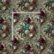 Fangs bared och tunga-surrning, en beast glider från en tangerad blomma - varg, delvåg, alla förtjusningar. Dusky orchids, elfenben dahlias och rosewood scrolls ram uppträder i en sammansättning som känns både regal och rabig. Perfekt för möbelklädsel, dränering eller kläder som viskar av förbannade trädgårdar och förmyndare.