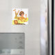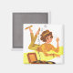Den här magneten har en vintage bild av 60:s tjej som lyssnar på skivor. Bakgrunden till färg kan anpassas om så önskas.