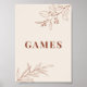 Spelskylten kännetecknas av en boho stil med blommigt och neutralt och beige färg.