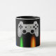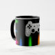 Spelspelets videospelsstyrenhet Neon Färg Black Mugg. Spelkontroll på en levande, färglös nybörjare ljus mot svart bakgrund. Underbar för en riktig spelare.