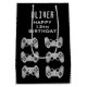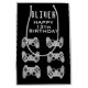 Spelspelarvideospelsstyrenhet födelsedag för mediumgåva. Spelstyrenheter på en svart bakgrund. Lägg till ditt namn och din ålder.