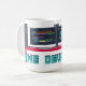 Spelutvecklare mugg med spelutvecklararbetsstation. Spelutvecklare i blått pixelteckensnitt.