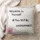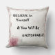 Spets- och rosa blomsterdesignad kastkudde med "Tro på dig själv och du kommer att vara ostoppbar" Underbart present till henne! Ett fantastiskt uppiggande uttryck!