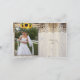 Elegant vit spets, band, solrosor och trädgård bröllop Tack tack fotokort med ditt foto på insidan med vit spets på trä med två korslagda satinband och solrosor. Text i brunt. Observera att spets, trä och solrosor alla är "tryckta på" och inte riktig tyg eller blommor. Denna eleganta, sofistikerade och romantiska design med en rustik essens är en del av en bröllopssats och är perfekt för ett landligt chic eller västerländskt höstbröllop med en neutral färgpalett.