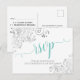 Spetsig akvamarinsk kalligrafi på vit bröllops-RSV Vykort
