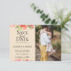 Ömtåliga akvarellblommor och löv på champagnejdfärgad bakgrund, foto spara datumet-kort. Designat för att matcha vår Spetsiga Akvarell Blommiga Kollektion.