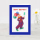 Ett ljust och gladlynt Ålder-närmare detalj födelsedagkort för 3 som är åriga, med bärande ballonger för en clown, från en handpainted illustration av Judy Adamson. Behaga känselförnimmelsen som är fri att ändra den inre texten till din böjelse.
