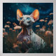 Sphynx Cat Gazing Sky – Vibrant Floral Art Poster