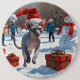 Sphynx Cat Runin i Snö med julklapp Knapp