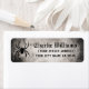 Halloween return address labels featuring a spider silhouette on a dirty gritty background, with your name and return address to the right.