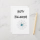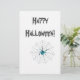 Spindeln på ett spindelnät. Med text för Halloween. spindel, insekt, djur, natur, abstrakt, målning, grafik, design, Halloween, skrämmande, vit, svart, krypande,