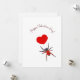 Röd spindel med hjärta på vitt bakgrundskort för Valentines day