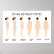 Ryggraddeformationstyper och diagram för sund ryggradsjämförelse poster med ryggradskurvor. Kvinnlig fil och bakvy. Chiropraktisk information
