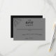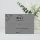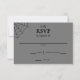 Det här OSA- eller svarskortet kan anpassas efter ditt eget datum. Det enkla kortet innehåller platser för gästerna till skrivan i deras namn och för att kontrollera om de kommer att delta och fylla i det totala antalet gäster i deras party. Svart text ställs in mot grått-färgadens bakgrund med svart spindelnät i det övre hörnet.