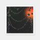Ett vackert nivåindelat, strålande spindelnät med gnistdroppar av vatten som klamrar sig fast vid det som kristaller eller juveler. Med bakgrundsbelysning av den mjuka glöden från en orange skörd i måne. Perfekt för en dekorationsskylt eller någon kosion.